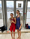 Agathe Lian (15) og Matilda Gaupseth (15) fra Kristiansund svømmeklubb imponerte under UM i svømming.