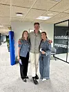 Fra åpningsfesten til Sparebank 1 SMN i Campus Kristiansund. F.v. finanshusleder Tiril Bjerkestrand Olsen, Vegard Harm og finansrådgiver Sara Slettedal Bjerkelund. Foto: Sparebank 1 SMN