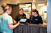 Direktør i Nordmørsmusea og styreleder for Normoria, Eigunn Stav Sætre, var første kunden for damene i Påtår. Fra venstre ser vi her Eigunn Stav Sæter, Gudbjørg Sigbjørnsdottir (arbeidsleder I Varde) og Aina Waage (kaféansvarlig).