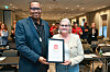 Hovedtillitsvalgt Britt Skarbø i Kappahl mottar Tillitsvalgtprisen fra LO-sekretær Fawsi Adem.