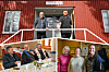 Øverst: F.v.: Geir Gjeldnes, styremedlem, kasserer og redaktør for nyoppstartede Mindeposten og Jon Gunnar Kirkholt, leder av Minde velforening. Nederst t.v.: Praten går løst inne ved langbordet i den røde kaféen i Byskogen. F.v.: Einar Uggelstad, Per Martin Graven og Magne Ommedal. Nederst t.h.: Grete Dahlen, Mari-Ann Kirkholt og Alida Mari Kirkholt synes det er flott at det igjen er liv og røre i kaféen i Byskogen.