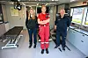 Besøk på ambulansebåten Mørejenta. F.v.: matros Thea Matthea Braanen (21) fra Horten, sykepleier Turid Dyrnes (59) fra Smøla og kaptein Johnny Haldansen (66) fra Gomalandet.