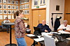 F.v.: Ingrid Larsen (fagleder for forvaltningsrevisjon ved Møre og Romsdal Revisjon SA), Steinar Wiik Sørvik (H) og Stein Kristiansen (R) går igjennom rapporten om sykefraværet i Kristiansund kommune som er utarbeidet for Kontrollutvalget.