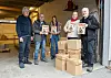 Pakking på Mediahuset før distribusjon. Fra v. Åge Fossum fra Mediahuset, Kjell Jostein Stavik, Ingrid Stavik, Karin Ormbostad og Gjøran Storsæther.