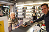 På første dag med nytt navn og lokasjon kom Kari Raanes Kaspersen (77) innom for å få hjelp til å velge deksel til sin mobil, og vi fikk se servicemennesket Hans Christian Kvamme i aksjon.