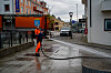 Med ni tonn vann, godt humør og høytrykk på slangen tok Torgeir og Kjetil fatt på vårvasken av Kristiansund sentrum.