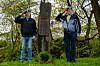 Fra venstre, Arve Rovik og Rune "93" Kristiansen foran minnesmerket på Innlandet gravsted.