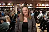 Marianne Mørk Danielsen deler sterke erfaringer om pårørenderollen ved demens for et fullt bibliotek i Kristiansund.