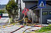 Brannmann i aksjon på åstedet.