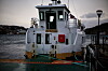 Sundbåten Angvik må ligge fortøyd ved piren i påvente av bedre vær.