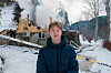 Mikael Valentin Garberg hørte et smell som liknet på fyrverkeri og snudde seg og kikket ut vinduet. Da var allerede halve veggen dekket av flammer og huset overtent. Her er han foran det nedbrente huset dagen etter, nyttårsaften tirsdag 31. desember 2024.