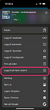 Menyikonet øverst til høyre. - Velg "Legg til på startsiden" eller "Add to Home Screen":